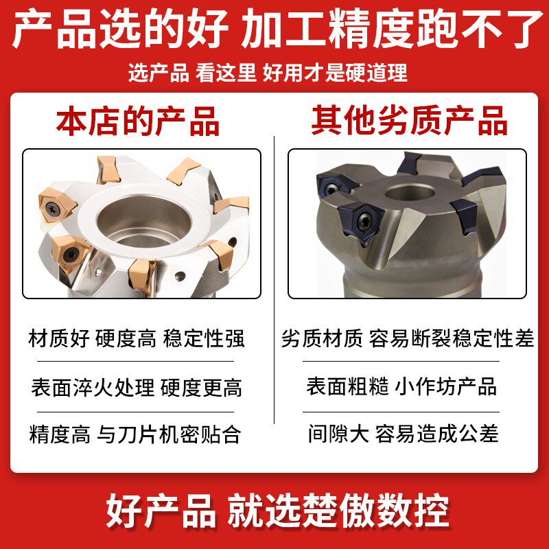 📚 快进数控铣刀盘双面WNMU080608刀片开粗快进给铣刀盘MFWN90度刀头