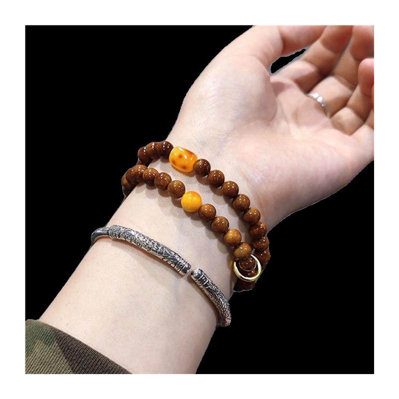 📚 精品精品库克大圆珠两圈手链搭配蜜蜡圆珠随形原石阿拉善玛瑙手串
