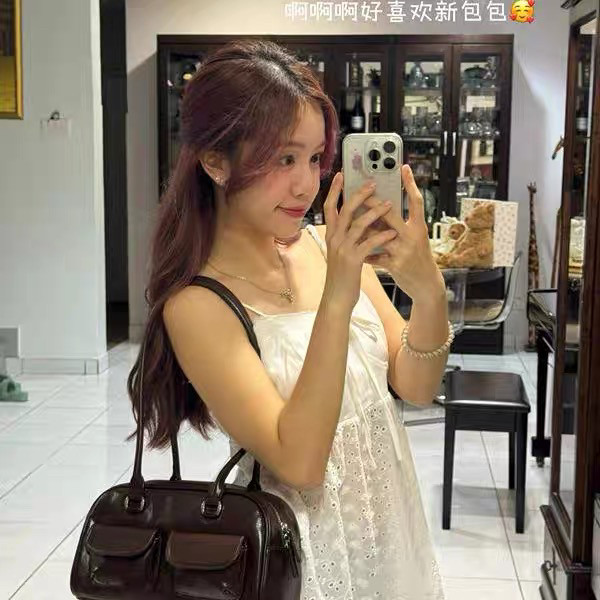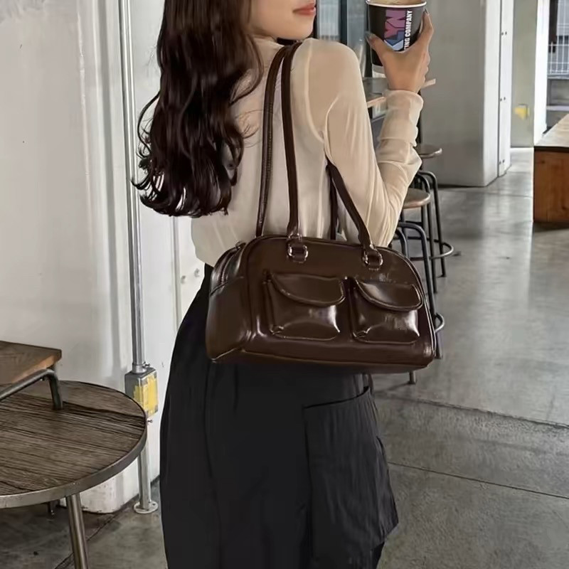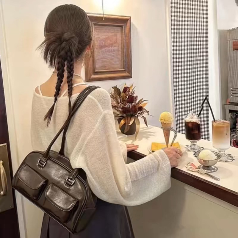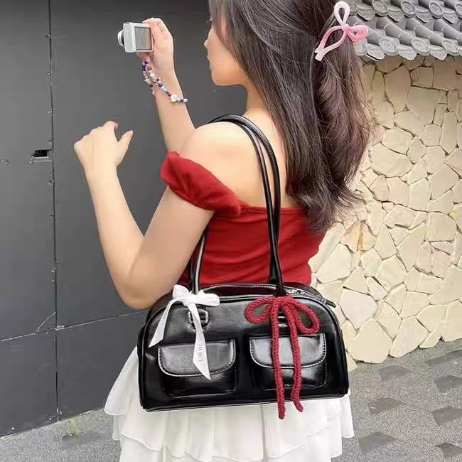 📚 韩国新款保龄球包许允真同款晕针单肩腋下包包波士顿包