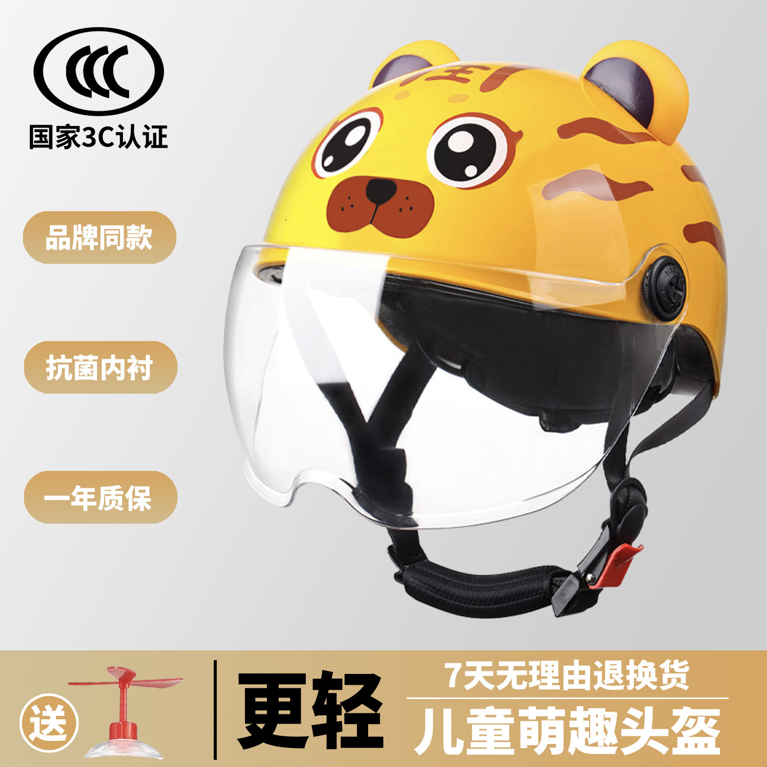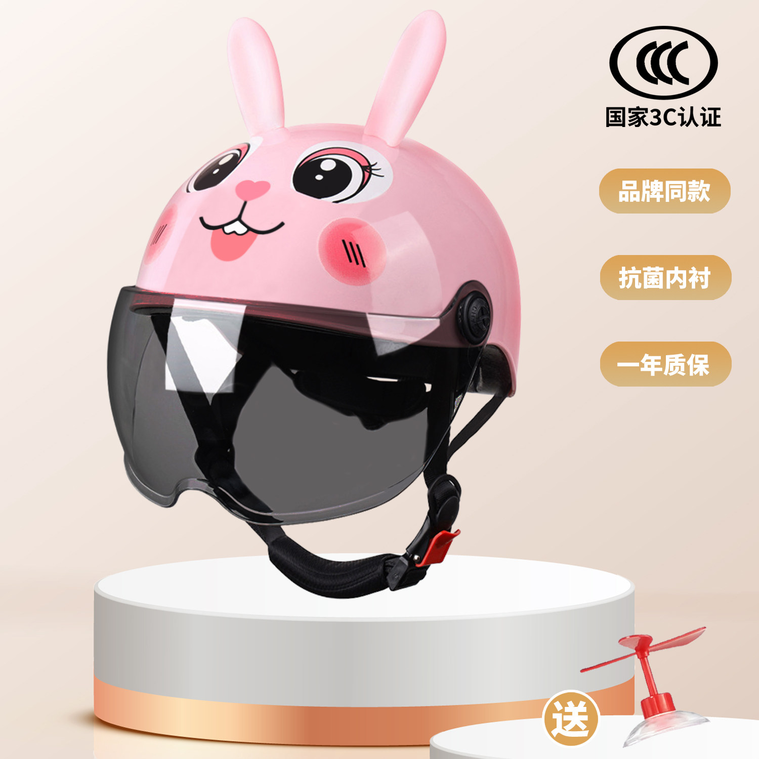 📚 国标3c认证儿童头盔男女孩兔子耳朵卡通女童电动车夏季防晒安全帽