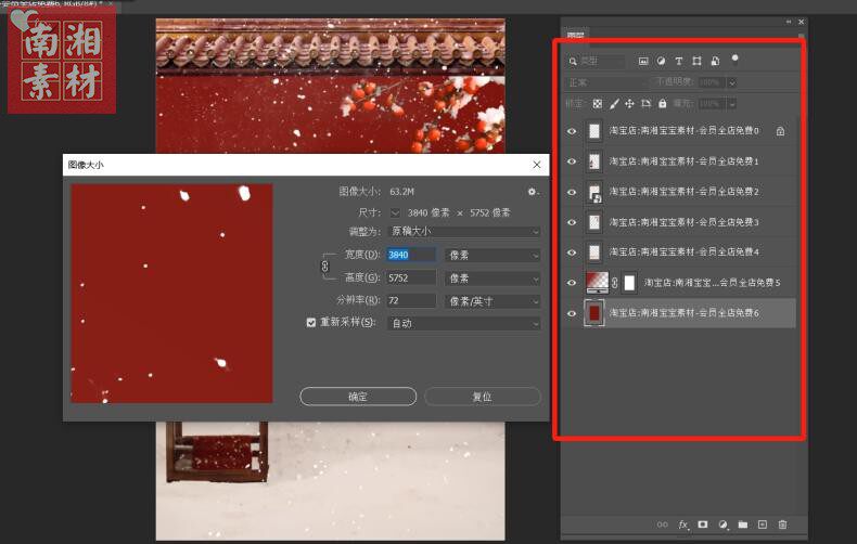 📚 新版儿童影楼后期PS模板古装风宝宝照片设计红色宫墙雪景主题素材