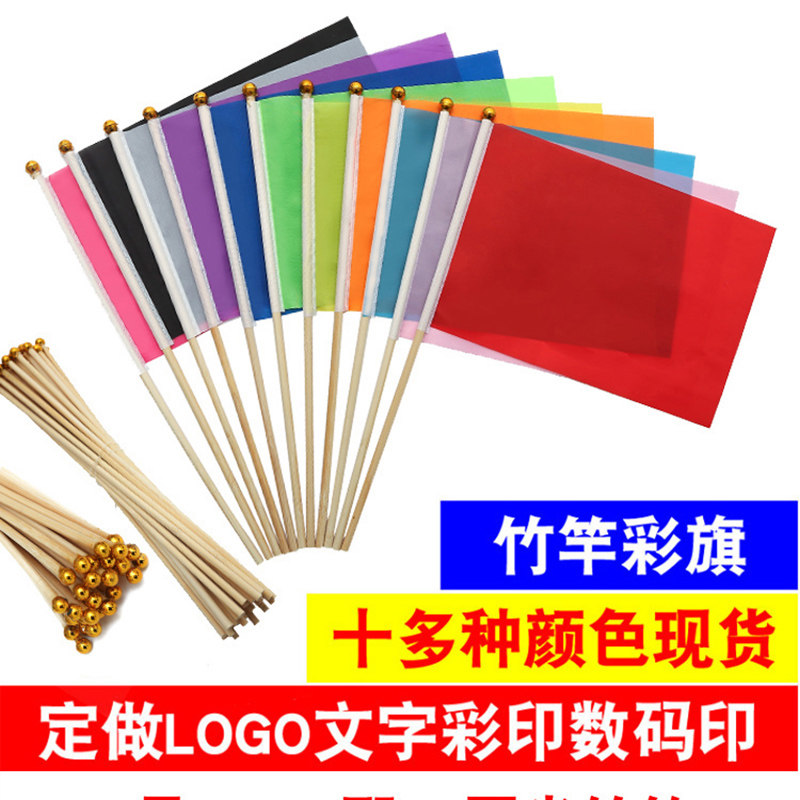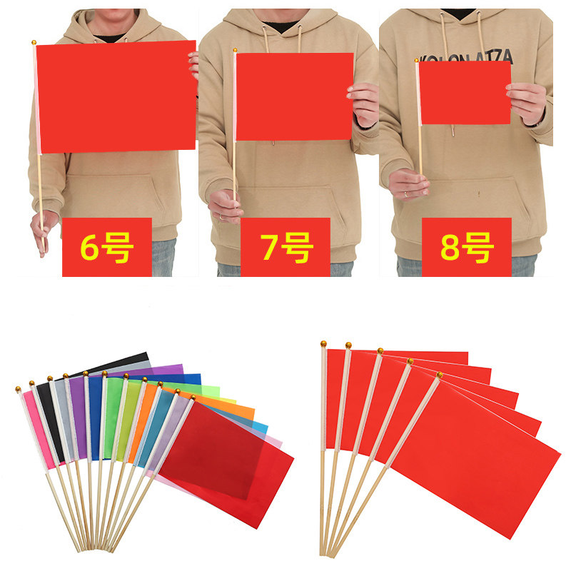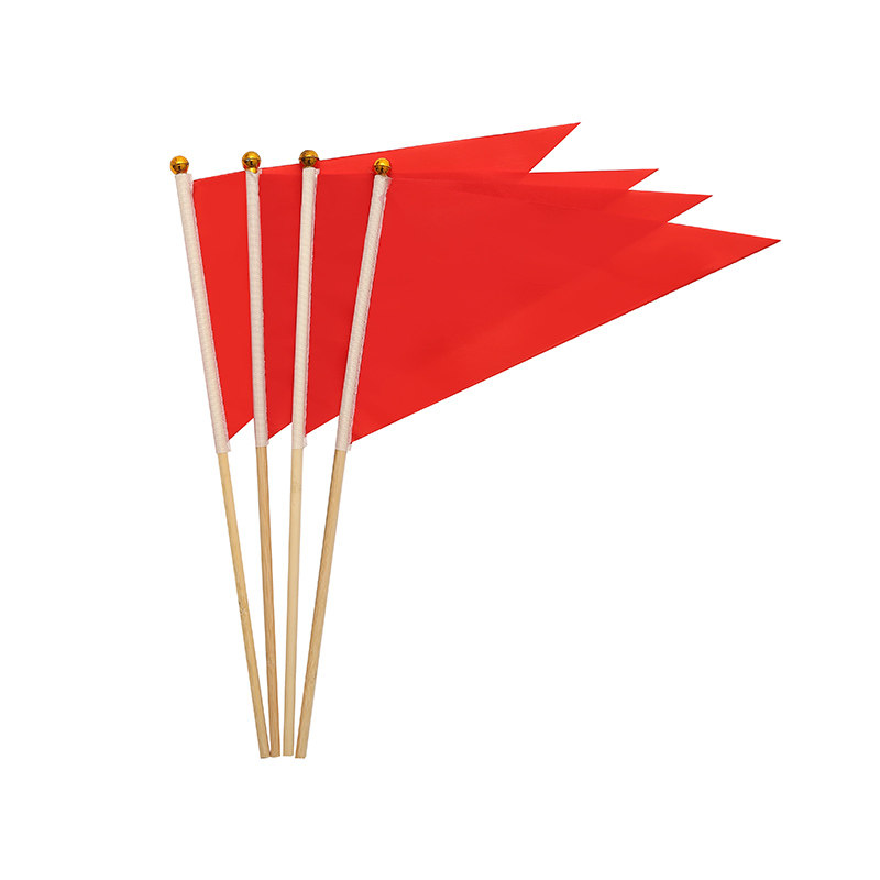 📚 6号7号三角彩旗红旗实心竹竿小手拿摇旗指挥旗广告空白旗插泥土地标记工地红黄蓝绿粉白色旗定做彩印数码邱