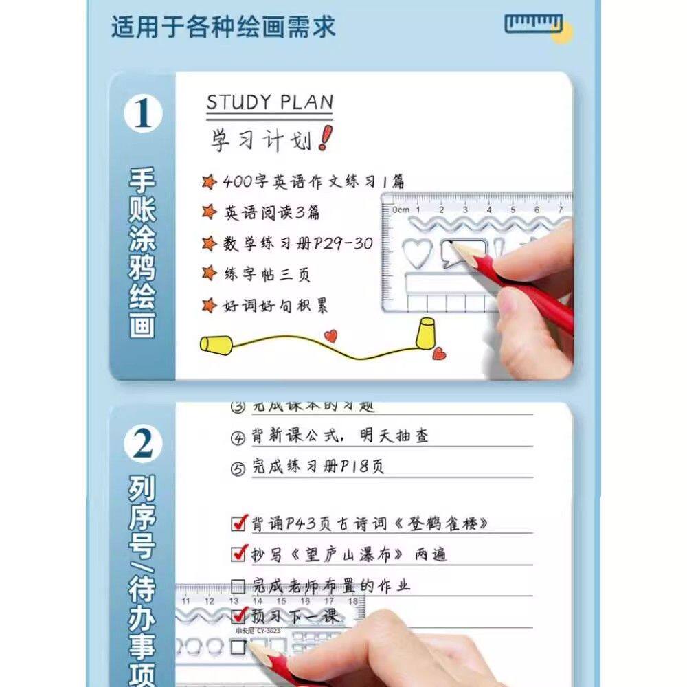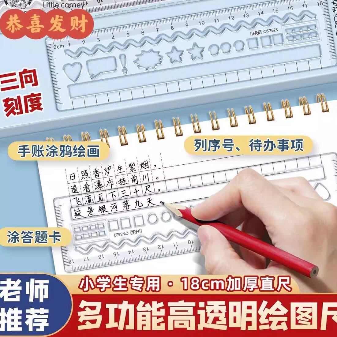 📚 规范写字学生尺小卡尼多功能尺子划线练字尺汉字对比写字打格刻度尺数学曲线画线尺