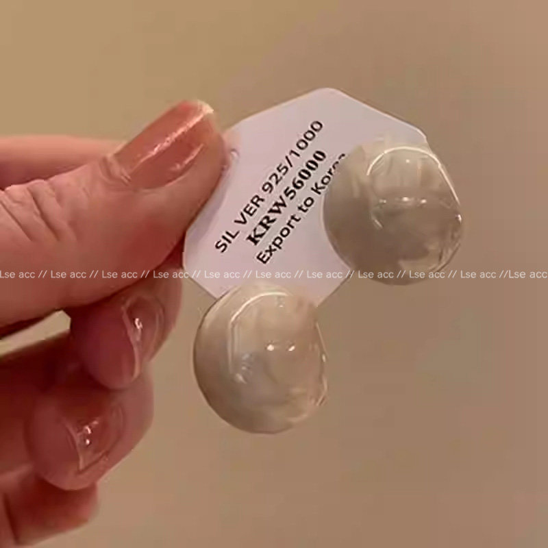 📚 法式复古奶白色滴釉豆豆耳钉艺术感椭圆几何耳饰气质百搭耳环小众