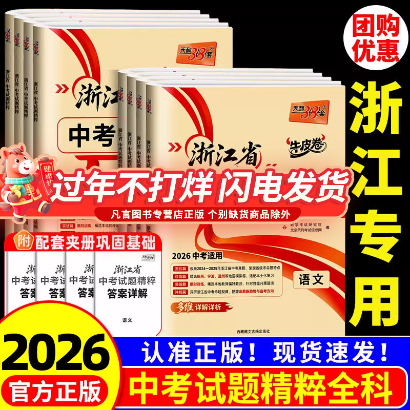 📚 浙江专用2026版天利38套牛皮卷浙江省中考试题精粹语文数学英语科学社会法治历年中考真题卷2025全套总复习中考真题试卷汇编模拟卷