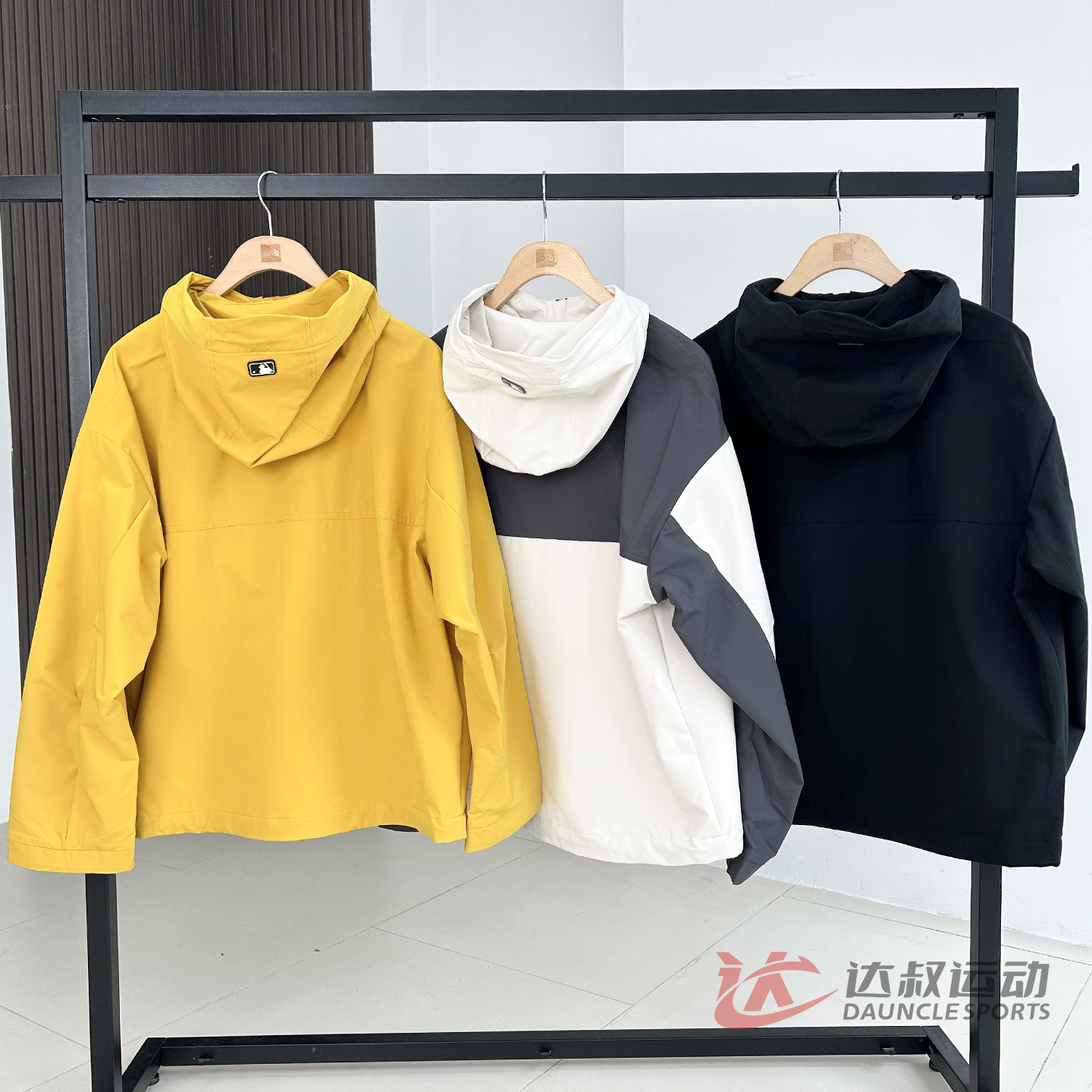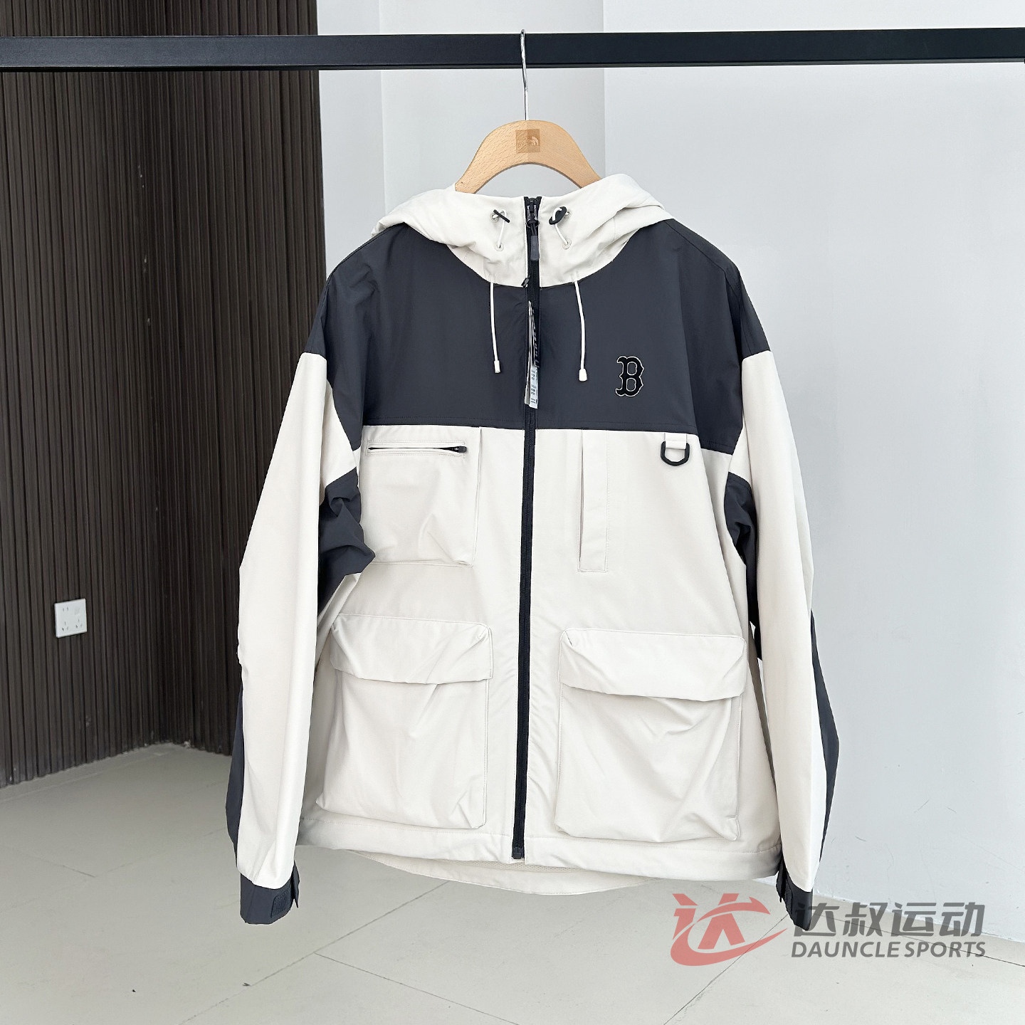 📚 25新款MLB情侣冲锋衣外套男女NY防泼水连帽拼接运动夹克3AWJB0554