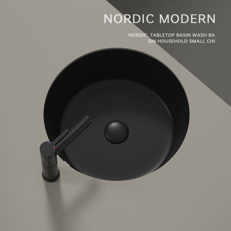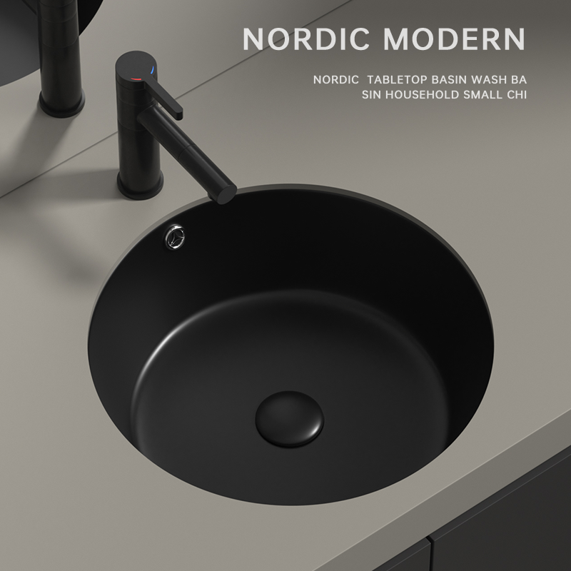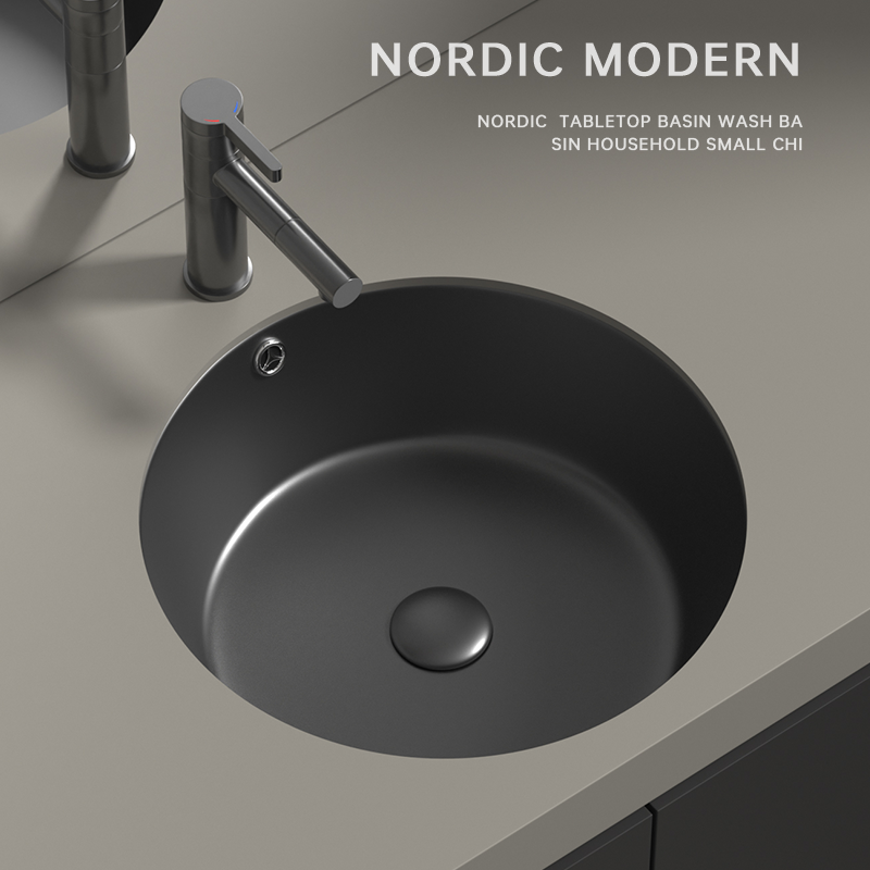 📚 枪灰黑色正圆形台下盆陶瓷洗手盆嵌入式卫生间小尺寸阳台洗脸台盆