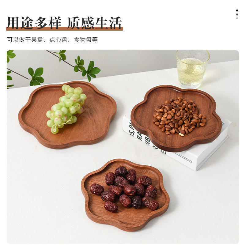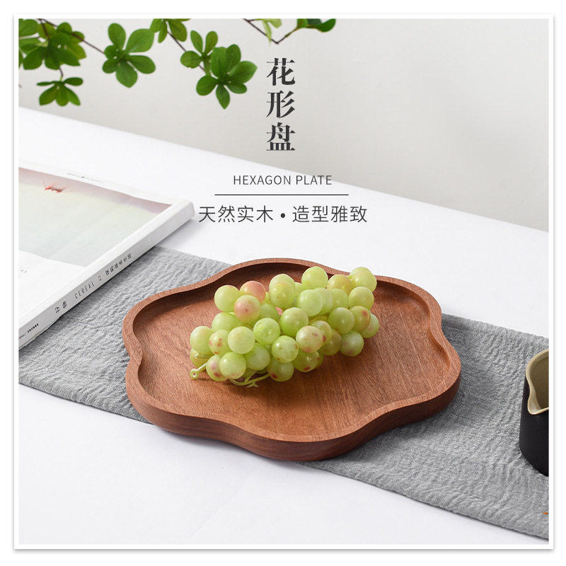 📚 实木餐盘木制托盘茶点盘西餐盘家用餐具收纳盘茶盘水果盘花边造型