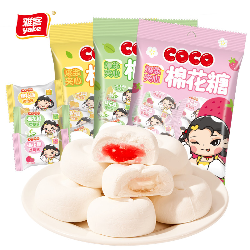 📚 雅客COCO棉花糖爆浆夹心棉花糖水果味糖果夹馅软糖糖果零食100g*3
