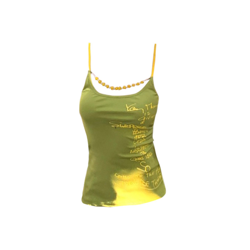📚 美式复古多巴胺绿色收腰个性上衣女纯欲风辣妹修身背心小吊带夏季