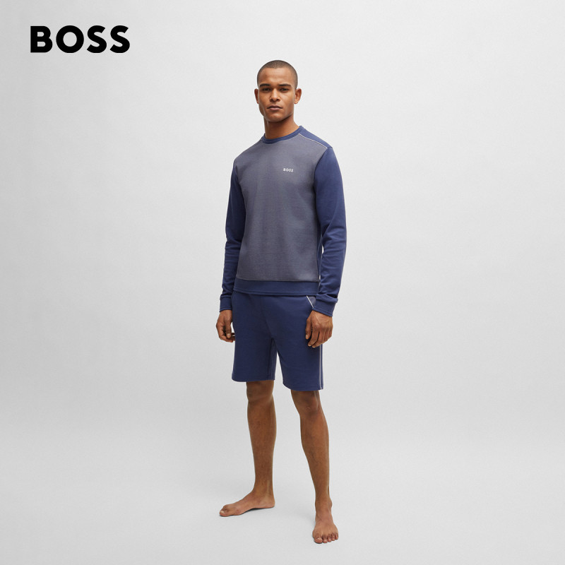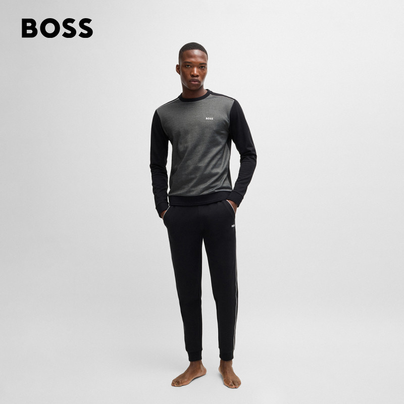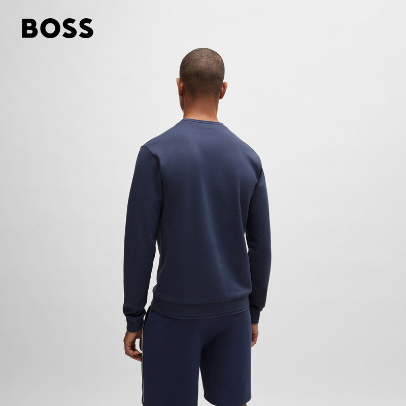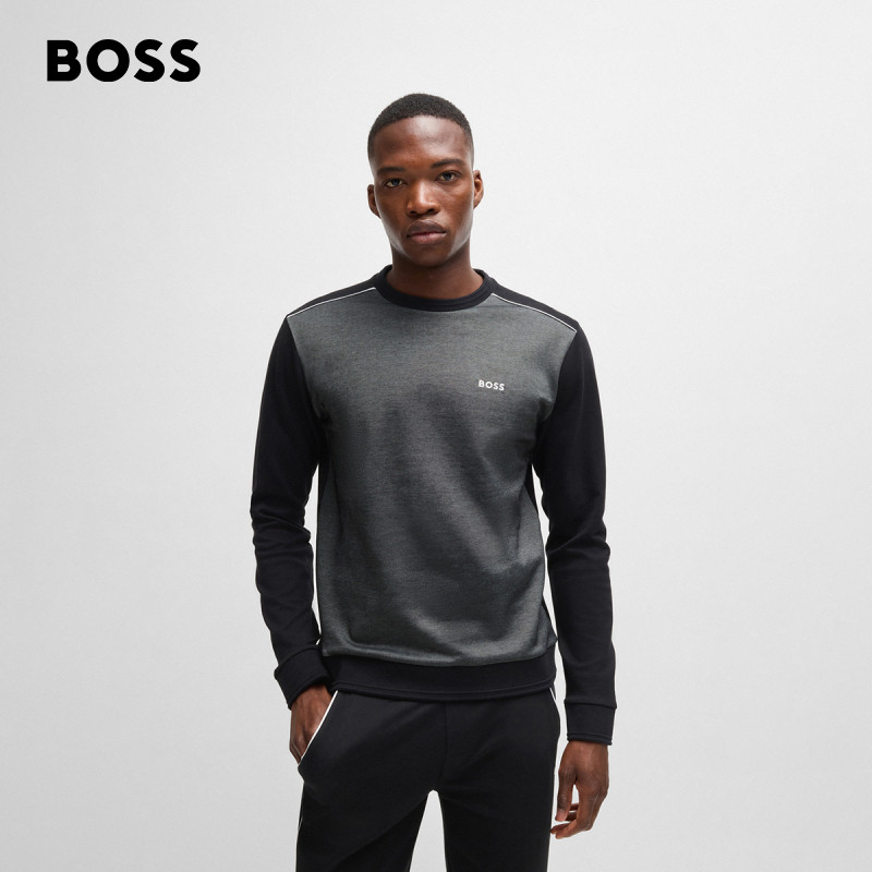 📚 BOSS博斯 男士提花纹理棉质混纺圆领休闲卫衣