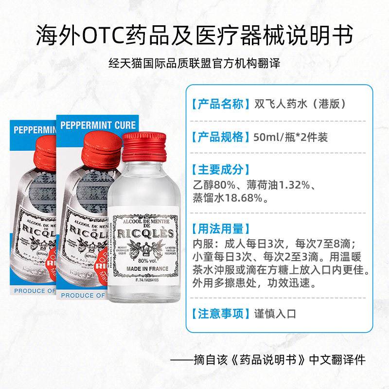 📚 【自营】法国双飞人港版利佳薄荷水50ml*2件感冒消暑提神清凉止痒