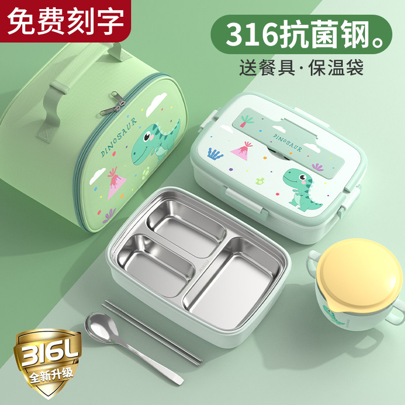 📚 316不锈钢保温儿童饭盒小学生专用上学分三格学生上班族便当餐盒