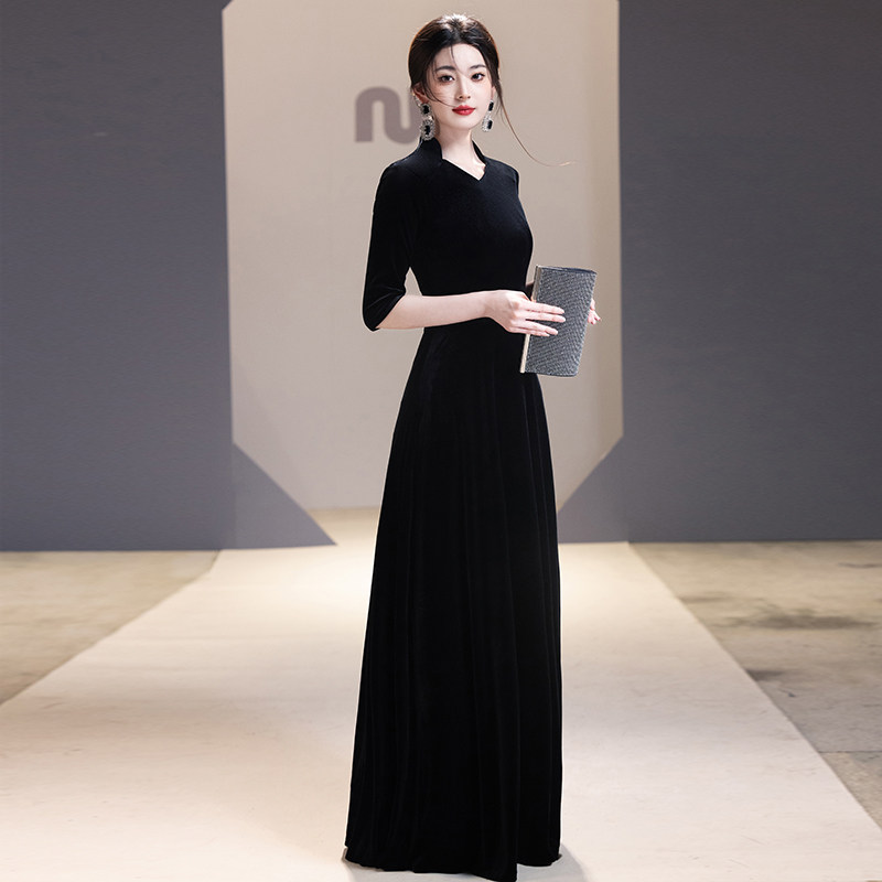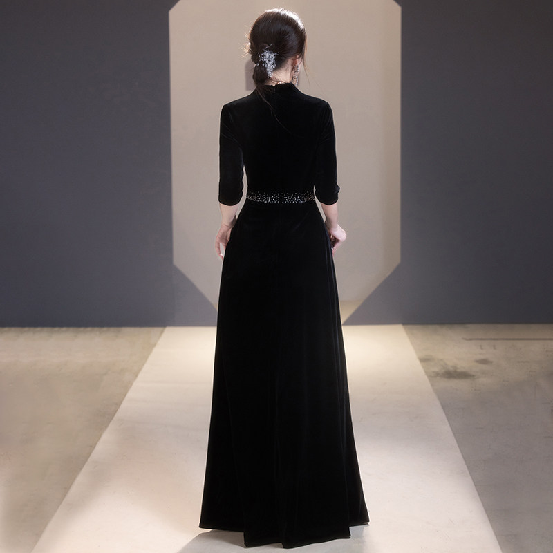 📚 月亦黑色高端指挥晚礼服立领大合唱团演出女长裙主持人钢琴演奏服