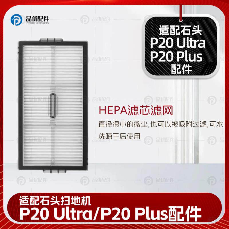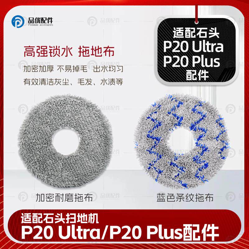 📚 适配石头P20 Ultra/Plus扫地机器人配件滤网清洁液集尘袋拖布耗材