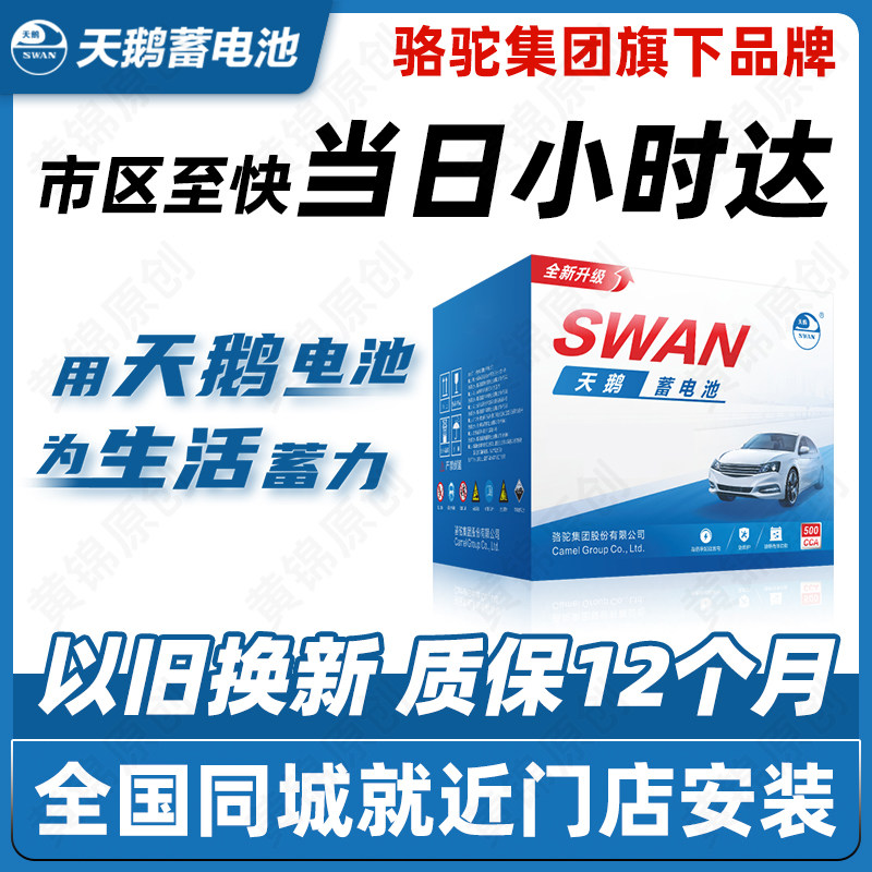 📚 骆驼天鹅蓄电池58500汽车电瓶适配北汽幻速威旺m20五菱荣光之光