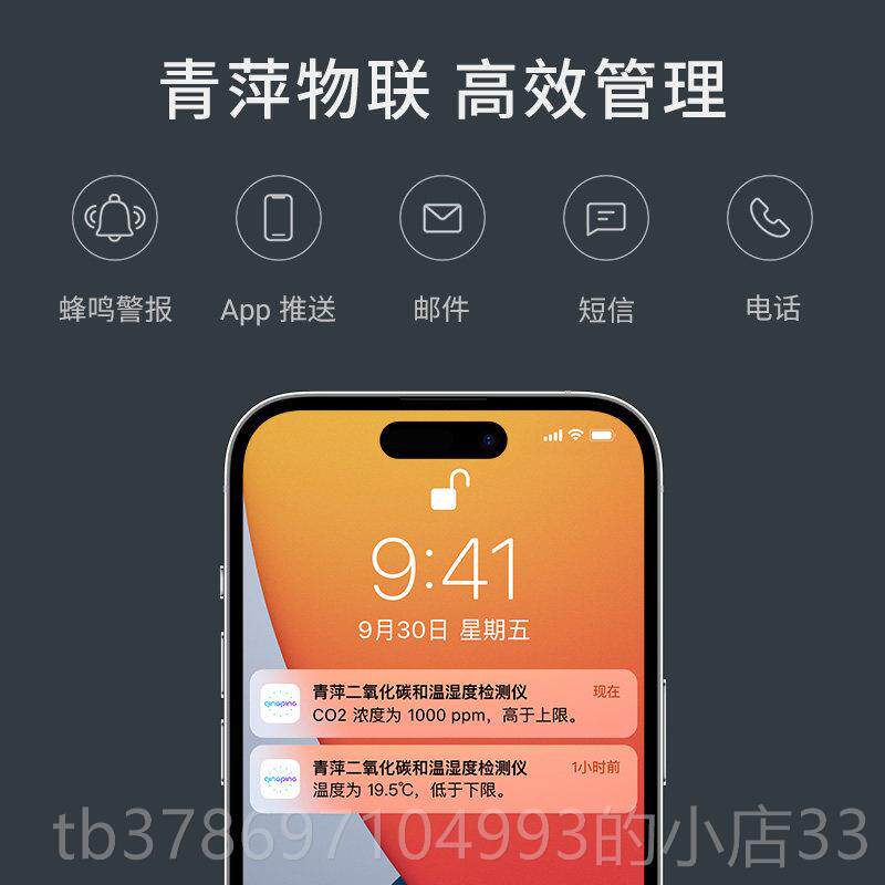 📚 新款青萍二氧化碳程和温湿测度检测仪高精度感器远监室测警报内大