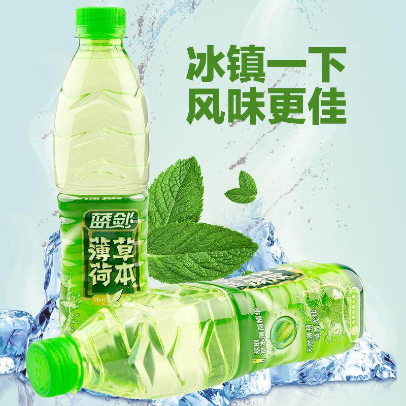 📚 蓝剑薄荷水天然草本饮料555mlX8瓶无汽瓶装水清新口感 薄荷味新货