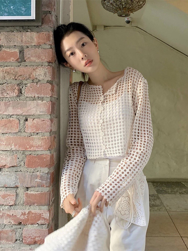📚 韩国amomento蕾丝镂空开衫女薄款外搭罩衫长袖防晒针织开衫外套女