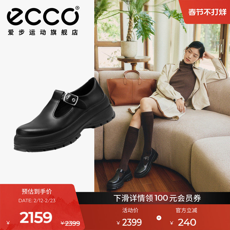 📚 ECCO爱步皮鞋女款 25新款厚底增高T字复古玛丽珍鞋 踪迹30 220763