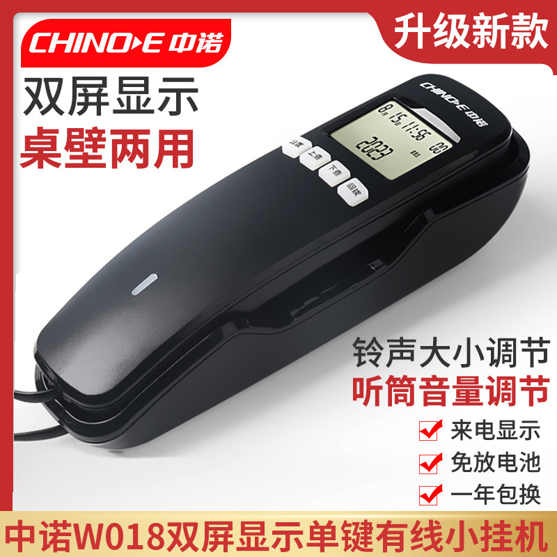 📚 中诺W018新款小挂机面包机电话机有线固话小分机客服包房双屏显示