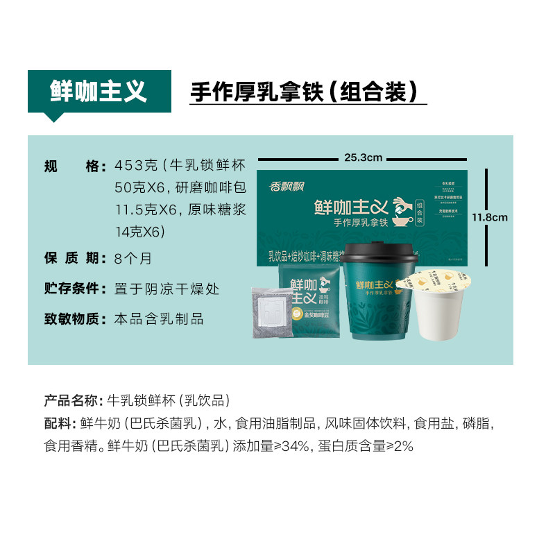 📚 香飘飘鲜咖主义手作厚乳拿铁咖啡1*6礼盒装