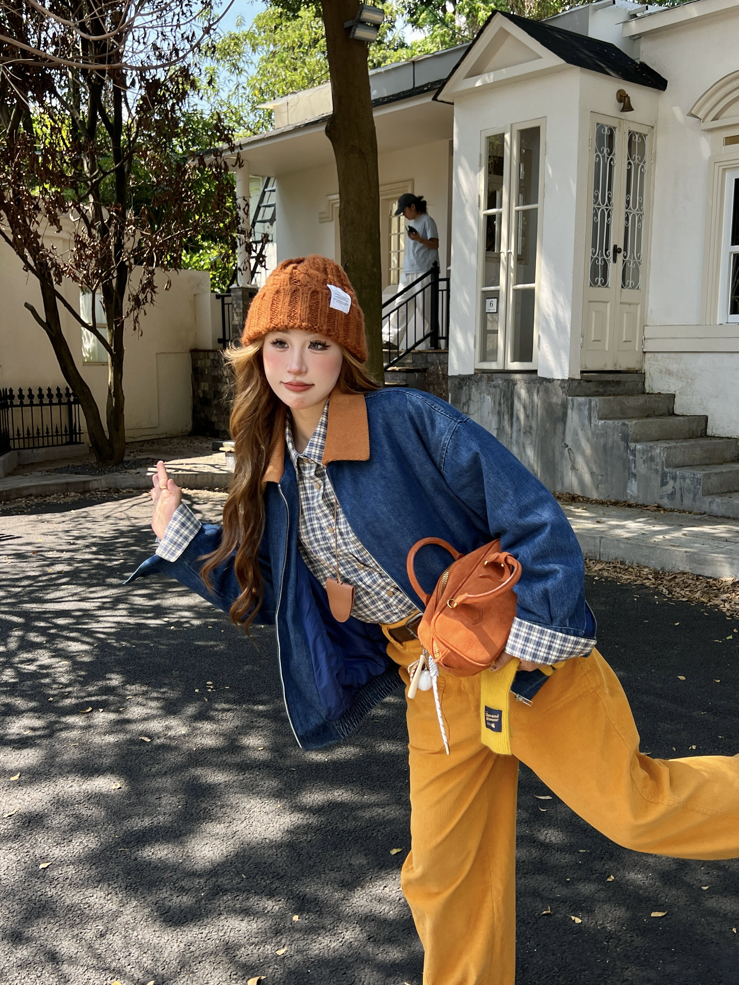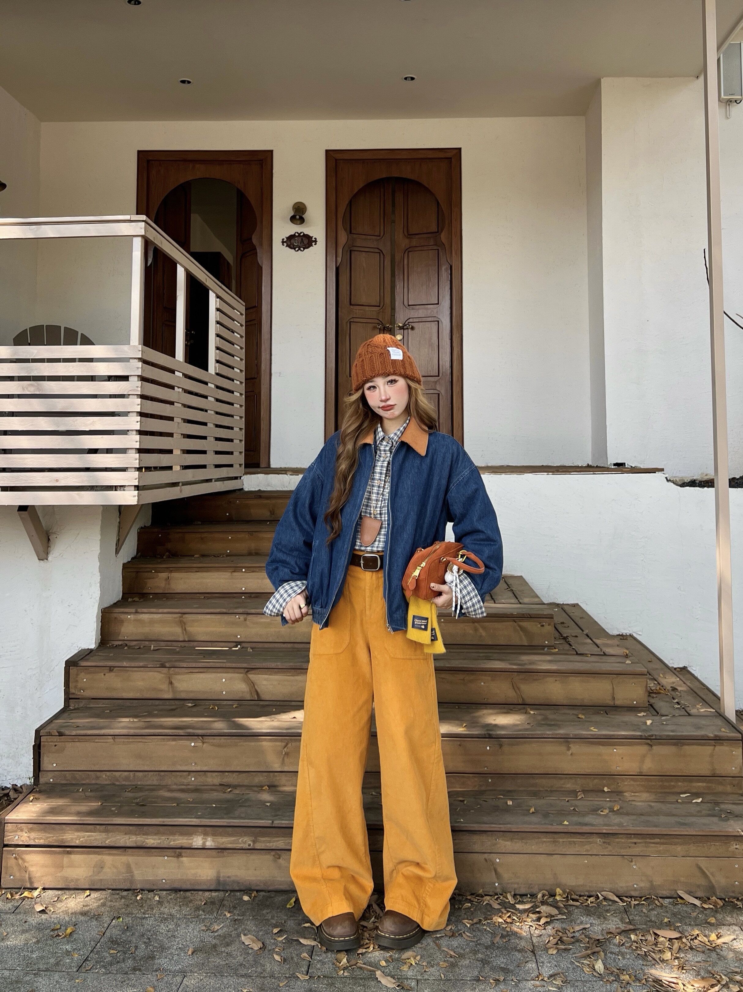 📚 林诗琦NICKIDAILY【云汀素雪!撞色拼接灯芯绒翻领牛仔棉服外套女