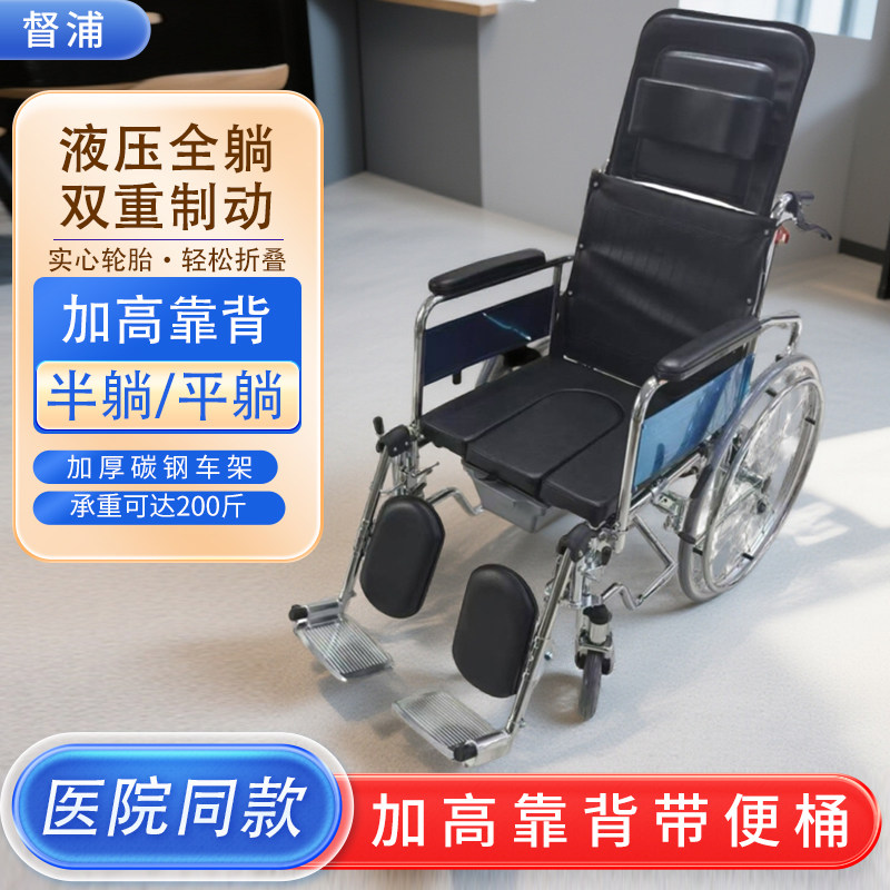 📚 液压轮椅高靠背可躺老年瘫痪老人专用带坐便折叠出行大小便多功能