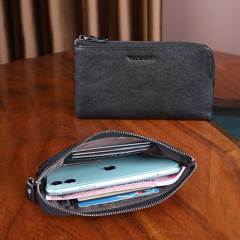 📚 真皮钱包男款式卡包长款长夹潮牌大容量拉链手机包头层牛皮手拿包
