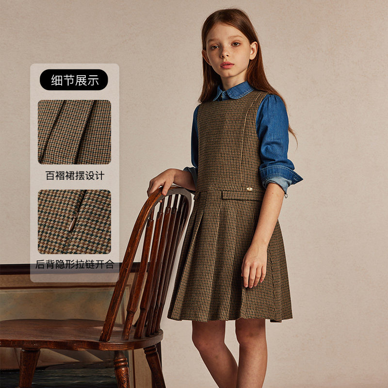 #elandkids衣恋童装 #女童连衣裙 #英伦学院风 #简约无袖 #券后价412元
