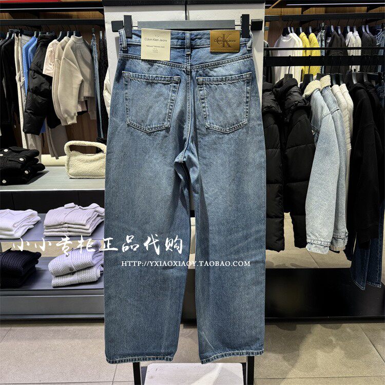 📚 CK Jeans专柜正品 2025早春女士高腰磨白直筒牛仔长裤 44B737G