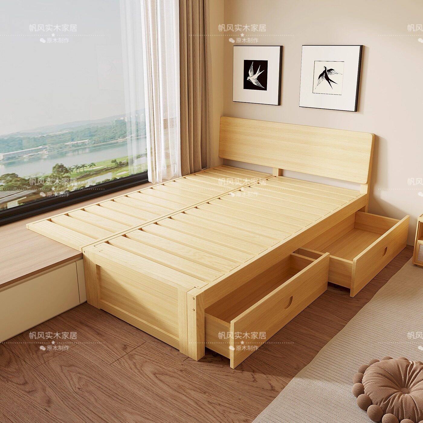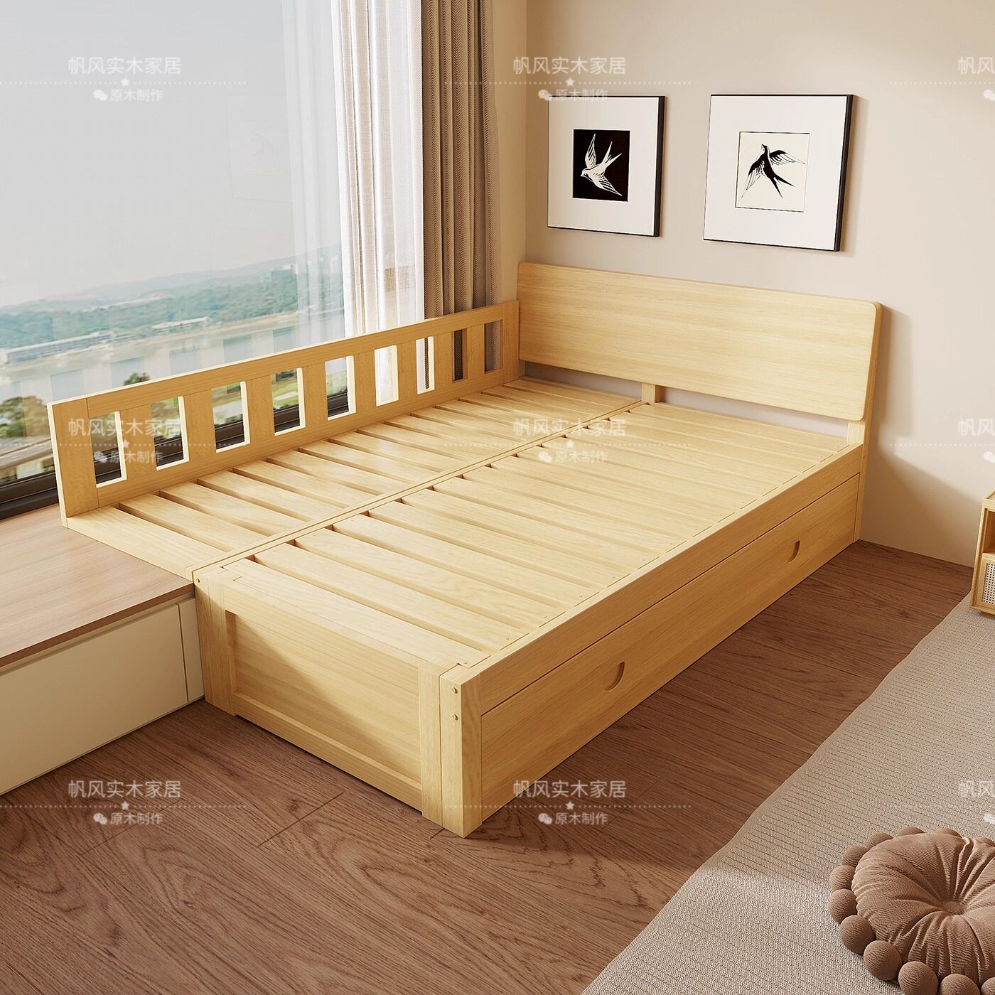 📚 飘窗床飘窗衔接床飘窗拼接床纯实木原木带抽屉储物床带靠背小户型