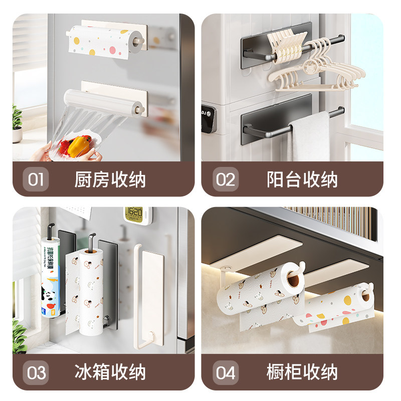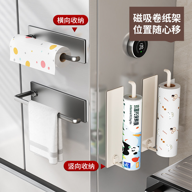 📚 厨房磁吸冰箱外侧面置物架侧收纳毛巾纸巾架免打孔保鲜膜收纳架子