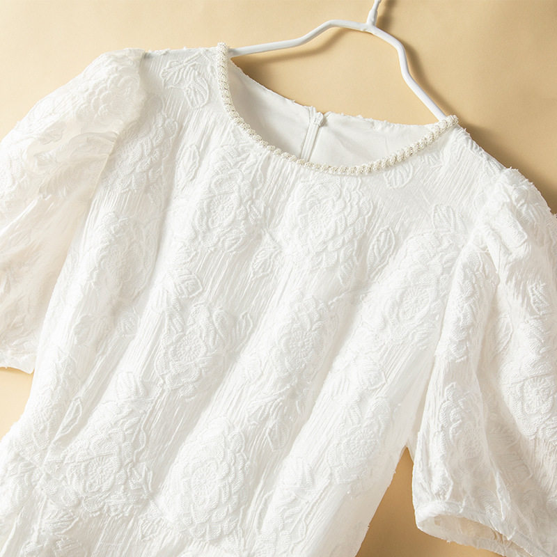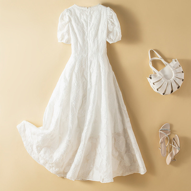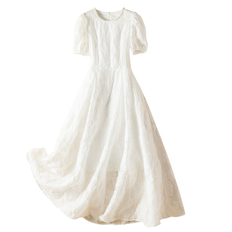 📚 现货大码白色连衣裙2021夏新钉珠提花仙气公主裙胖妹妹初恋长裙子