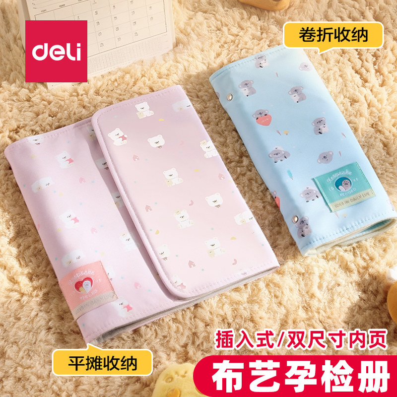 📚 得力PQ921布艺产检收纳册孕检报告册孕妈妈资料袋孕期怀孕记录册
