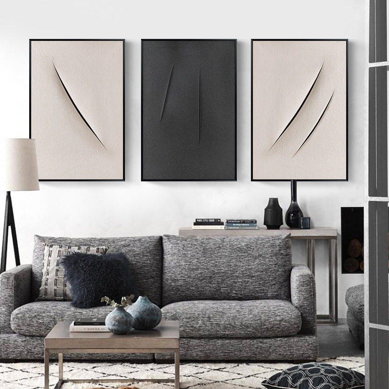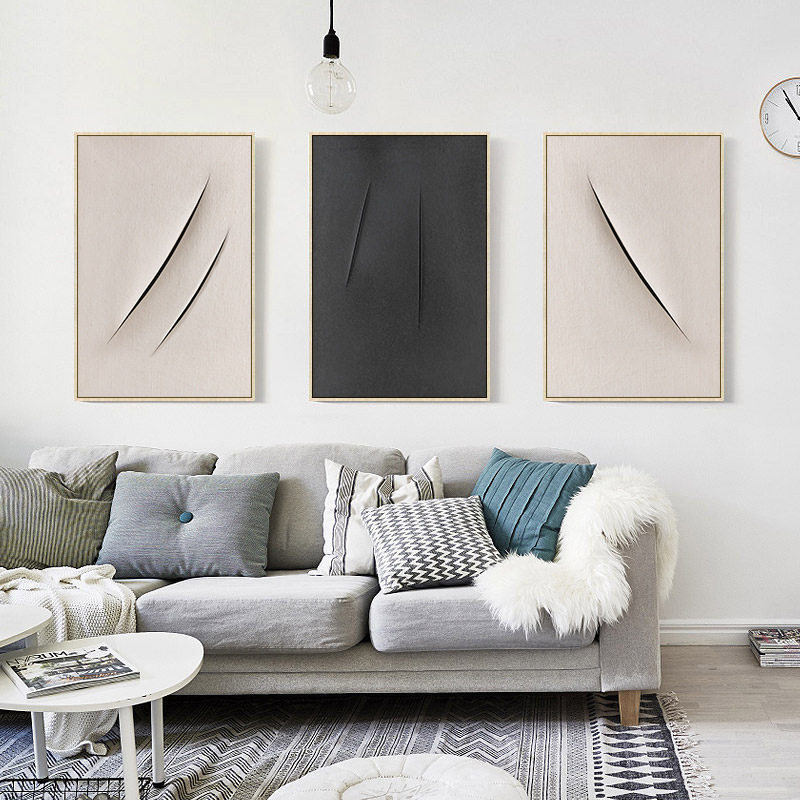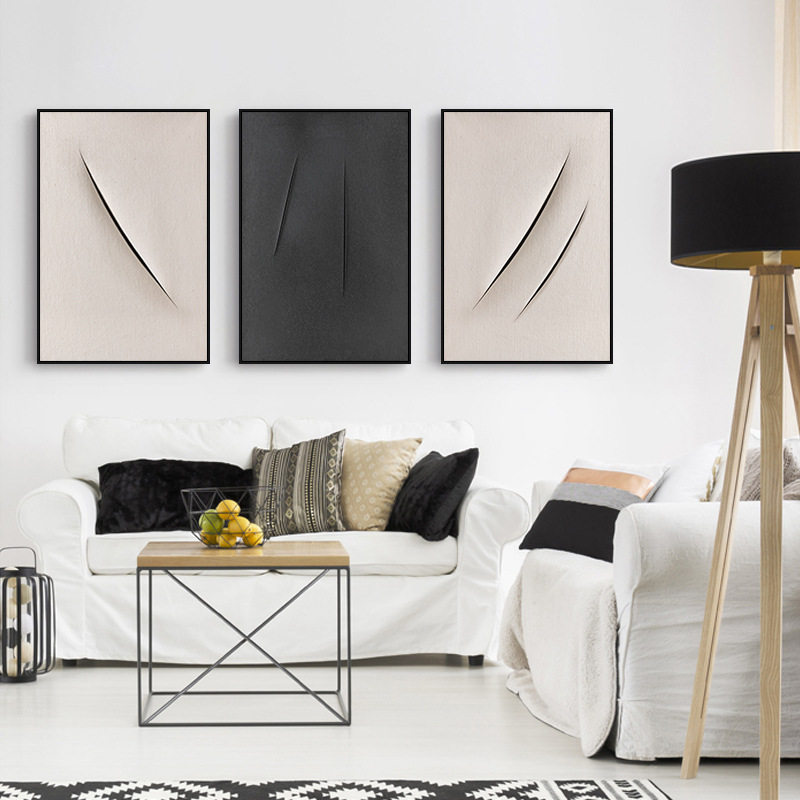 📚 割破的画布卢西奥·方塔纳LucioFontana黑白抽象画极简割痕装饰画
