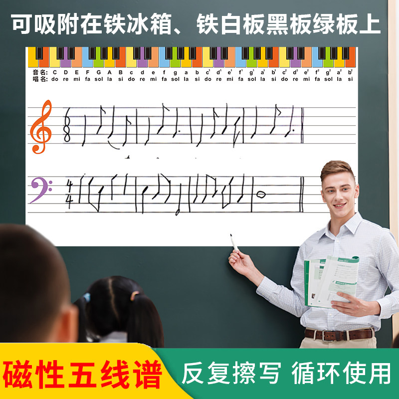 📚 磁性音乐五线谱软白板贴水性笔擦写 教学课件钢琴高低音识谱黑板