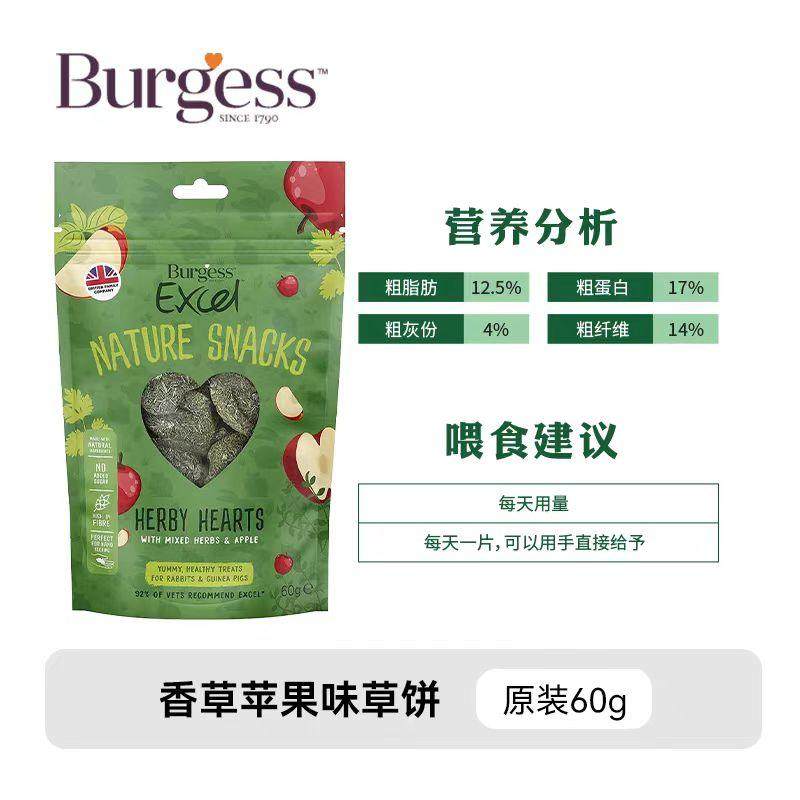 📚 英国Burgess布格斯爱心草饼苹果香蕉蓝莓兔子龙猫荷兰猪磨牙饼干