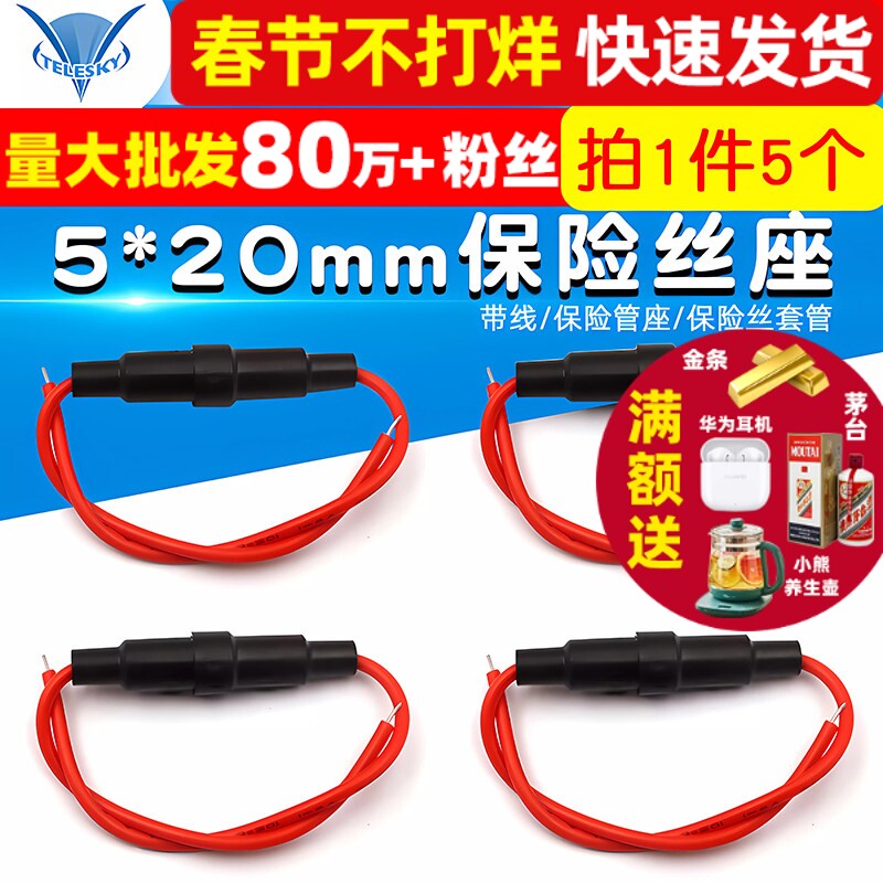 📚 5*20mm保险丝座带线/保险管座 保险丝套管 保险管座 (5个)
