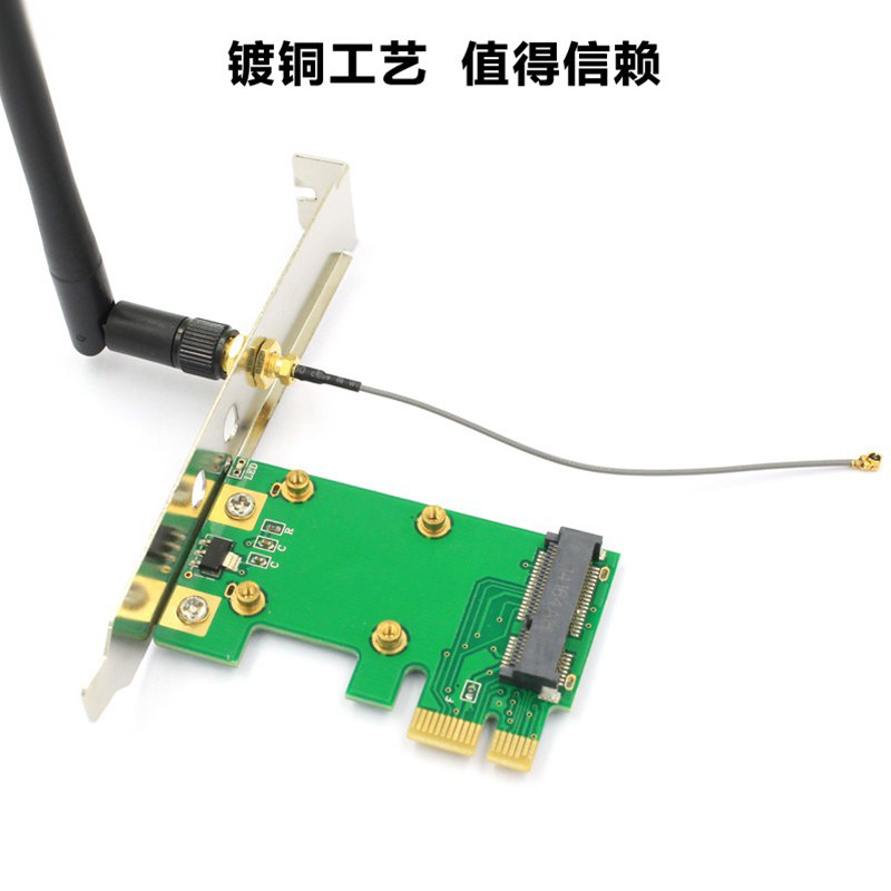 📚 迷你miniPCI-E转PCI-E1X无线网卡转接卡可加配馈线和外置天线