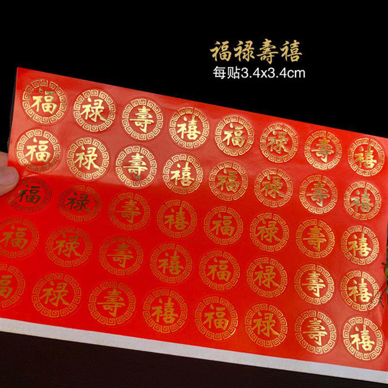📚 中国古风文字烫金圆形贴纸福禄寿囍旺顺发不干胶喜庆请帖封口贴