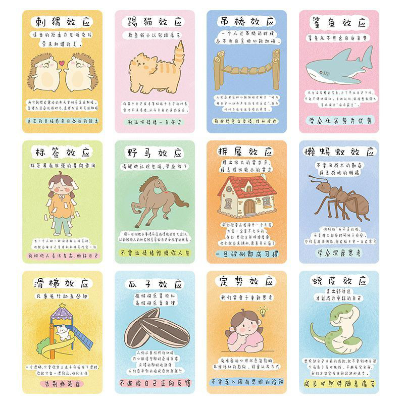 📚 心理学效应卡片卡通趣味插画学习社会工作培训机构青少年活动小卡