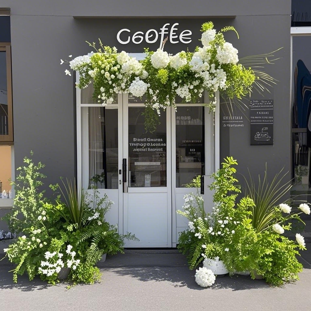 📚 新款森系门头门头花门楣仿真花咖啡店花店店门口橱窗开业花艺装饰