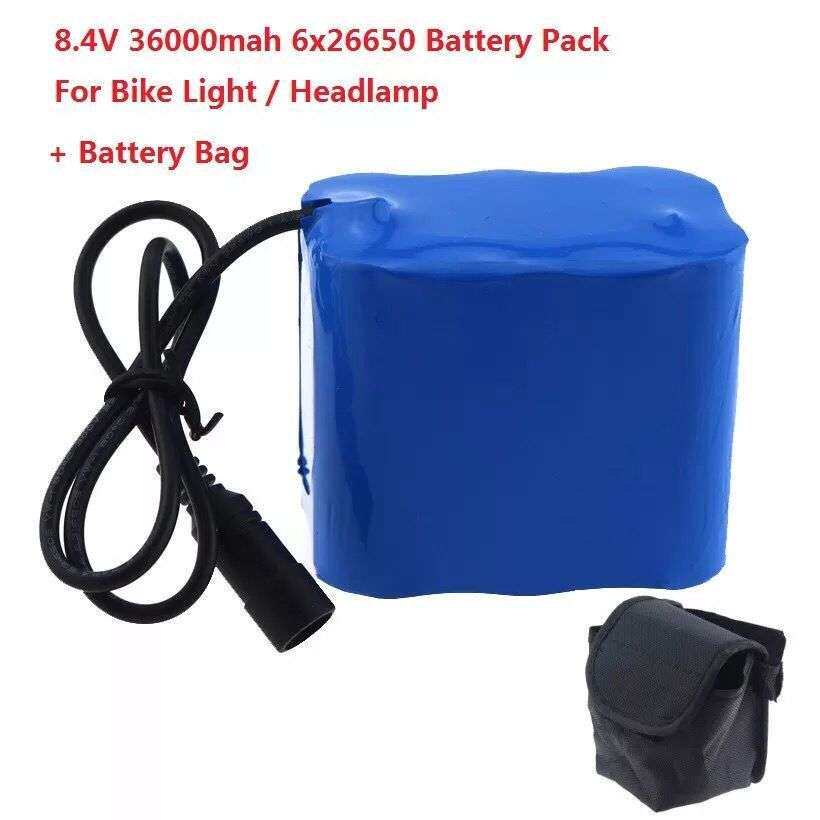 📚 自行车T6灯头灯前灯8.4V高容量6节26650带保护板充电电池组防水电