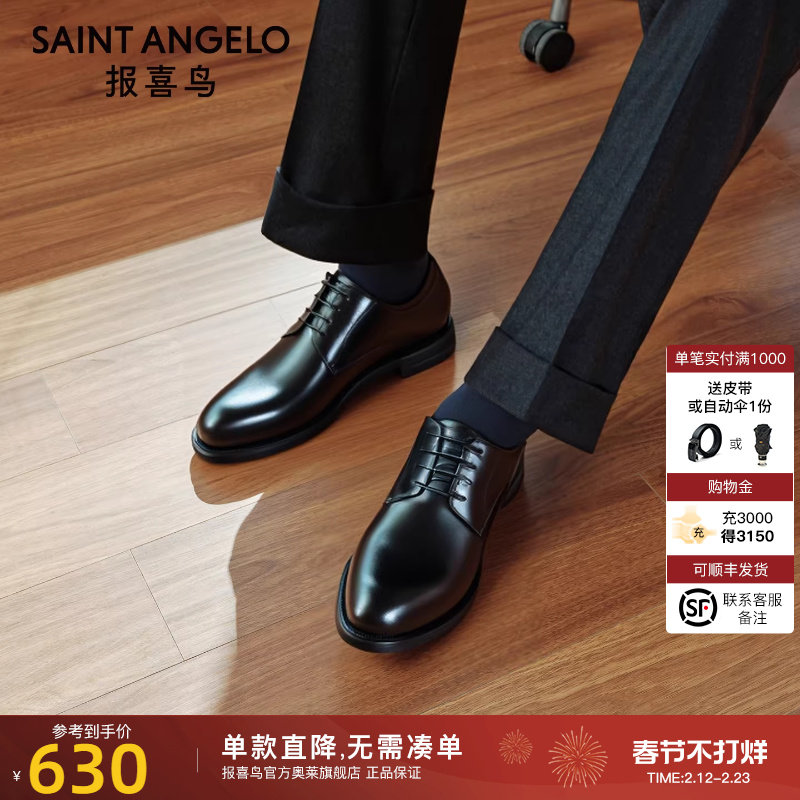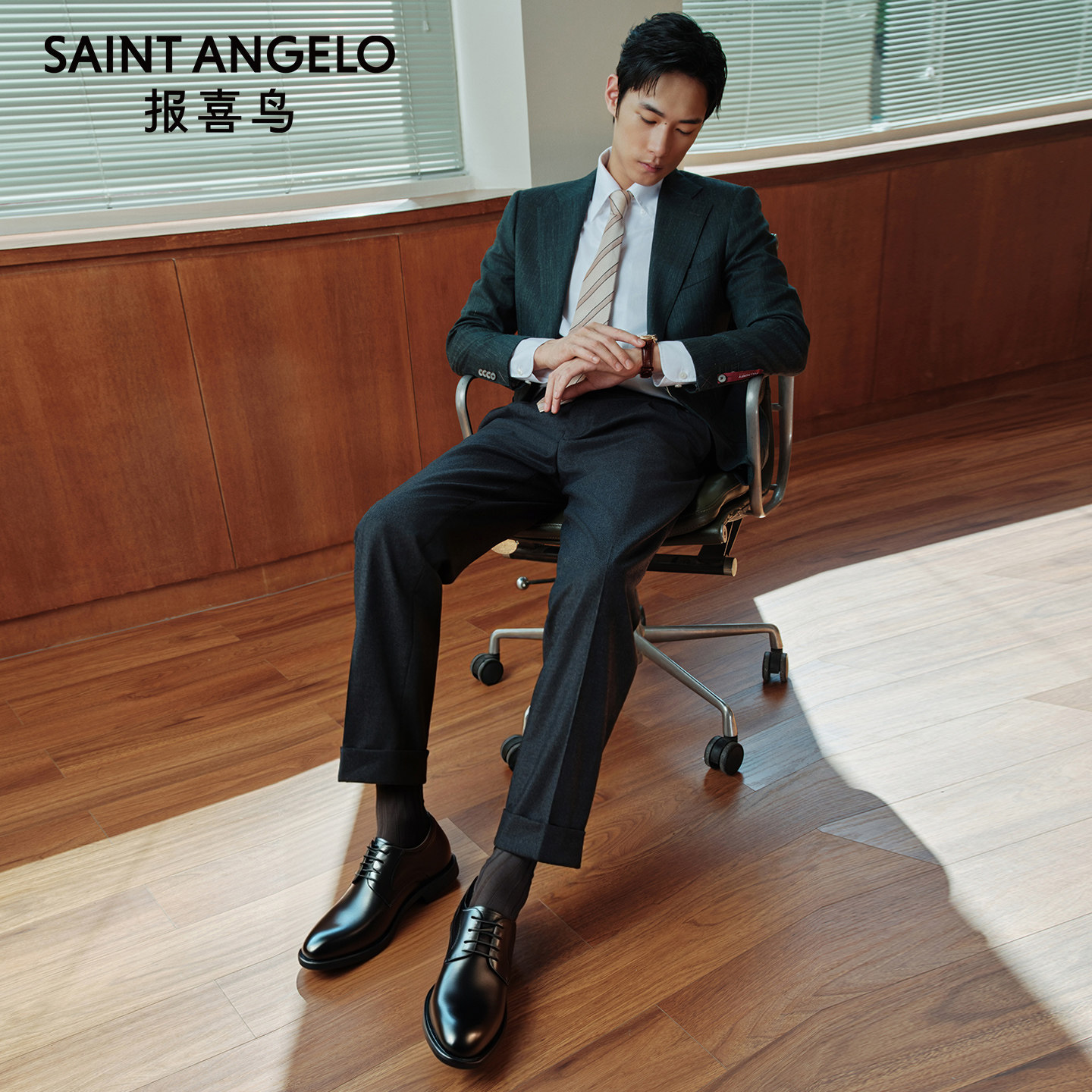 📚 【增高5.5CM】报喜鸟2025秋季新款商务正装皮鞋真皮男新郎德比鞋