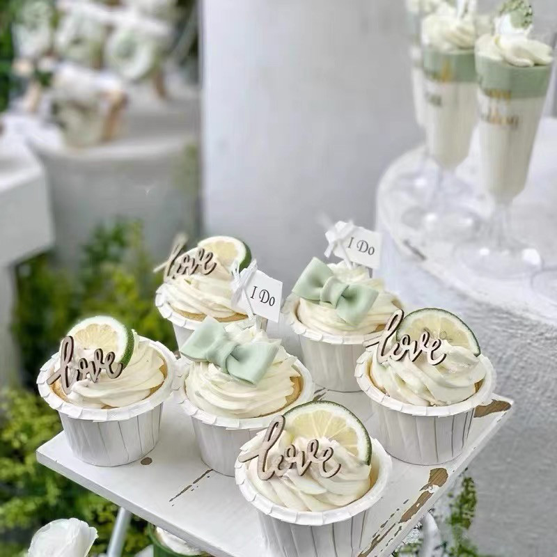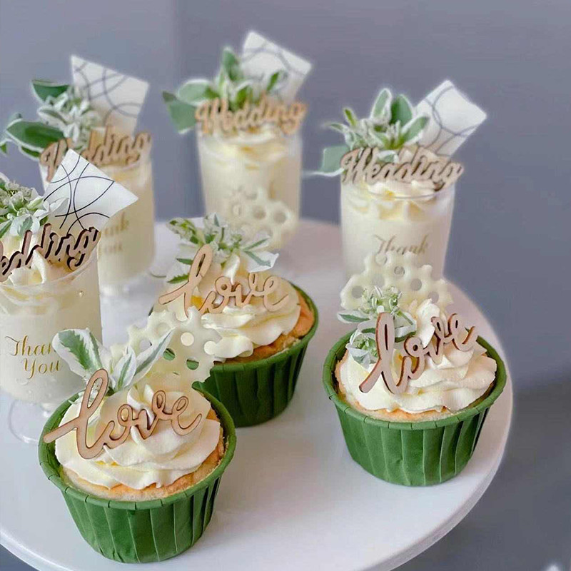 📚 森系婚礼甜品台纸杯高脚杯蛋糕装饰摆件love木质wedding贴纸插件