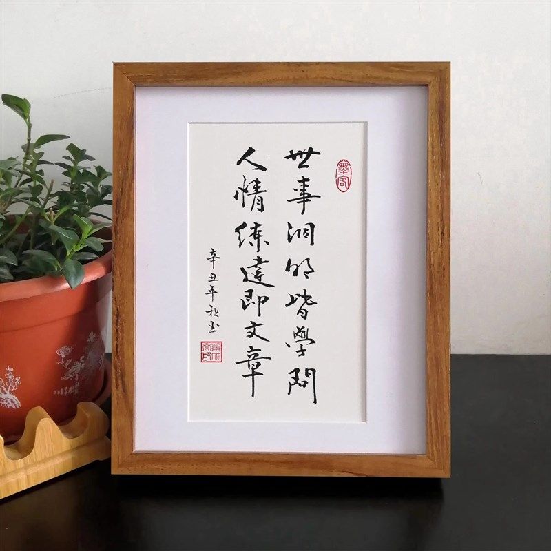 📚 纯手写世事洞明皆学问人情练达即文章字画摆件桌面励志书法摆台