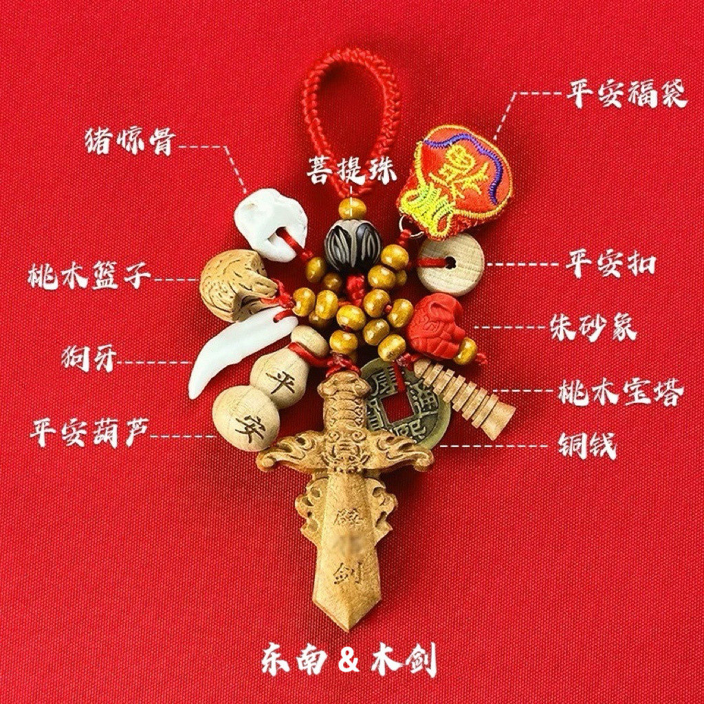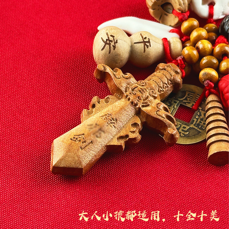 📚 普陀山桃木狗牙木剑小挂件男女孕妇随身朱砂婴儿儿童压宝宝惊外出