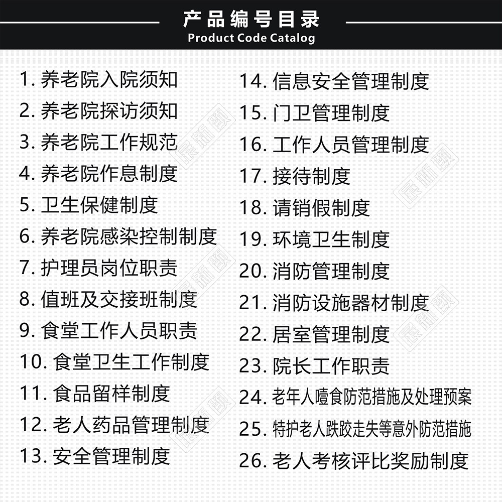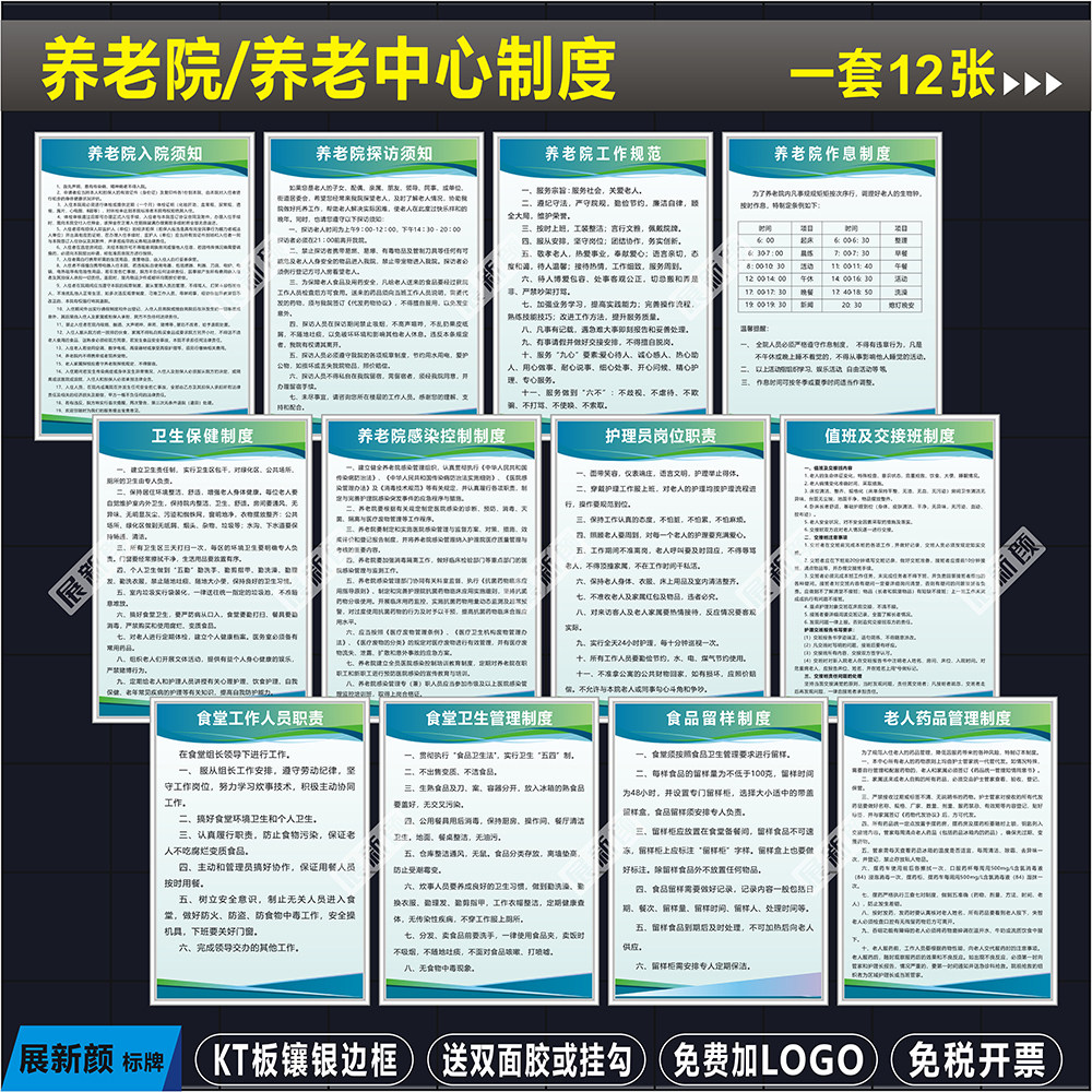 📚 养老院管理制度老年公寓护理员工作院长值班敬老院安全规章牌全套