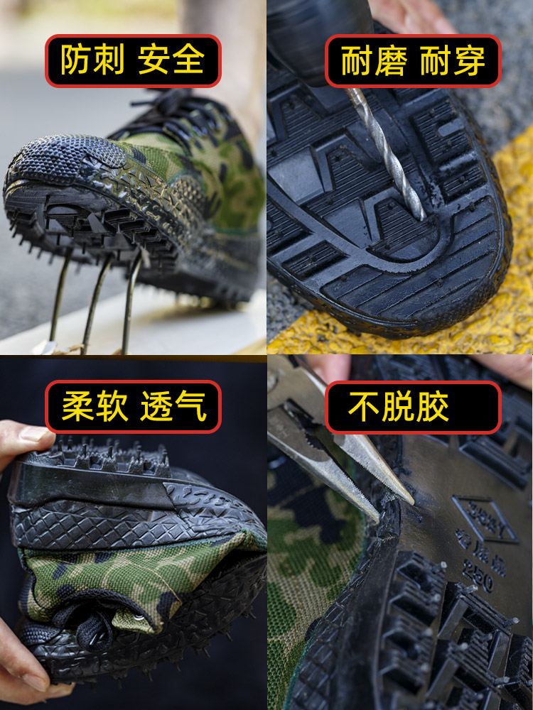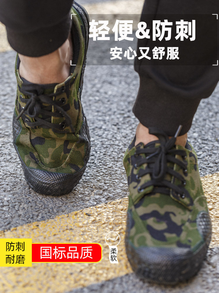 📚 防刺解放鞋防钉鞋民工作工地劳保军训男女耐磨迷彩防臭轻便特训鞋
